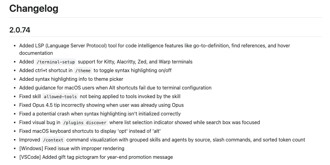 Claude Code 2.0.74把LSP(Language Server Protocol)原生接进来了。这件事的意义不止”跳转定义更准”,而是让AI工具像IDE那样直接问”语言服务器”要结构化答案:定义在哪、谁调用了它、类型签名是什么、工作区有哪些符号。结果是——导航更准、误报更少、理解更快,复杂检索任务的Token消耗也不再像以前那样离谱。
