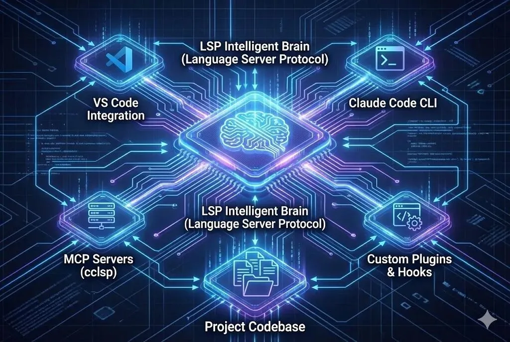 它是一个标准协议,把”代码理解”从编辑器里抽象出来交给独立服务(语言服务器)。工具问问题:定义在哪?有哪些引用?类型签名是什么?服务返回结构化答案。于是任何支持LSP的工具——VS Code、JetBrains、Claude Code——都能共享”同一套智能大脑”。